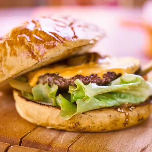 [漢堡]:將純素漢堡肉排煎香,夾在全麥漢堡麵包中,搭配生菜、番茄、洋蔥和素食美乃滋,打造一份美味又健康的素食漢堡。