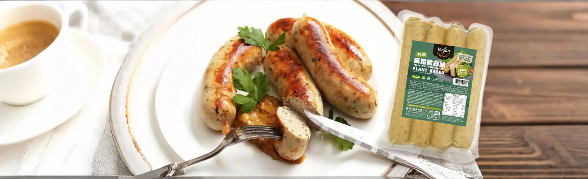 無論您是想享受早餐、午餐還是晚餐,做一份快速美味料理,這款「VeganSelect-純素慕尼黑白腸」都是您的理想之選!