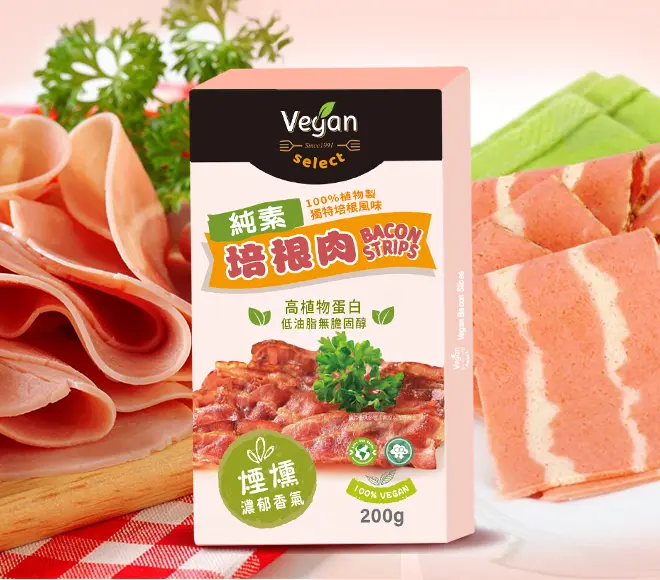 我們的純素午餐肉片,片片濃郁香Q。獨特的煙燻風味配方,每一口都品嚐到鹹香滋味。無論是單獨香煎,還是搭配其他食材,都能輕鬆變化出多種美味料理。這款純素午餐現成切片,省去處理的麻煩,是您快速料理的好夥伴!